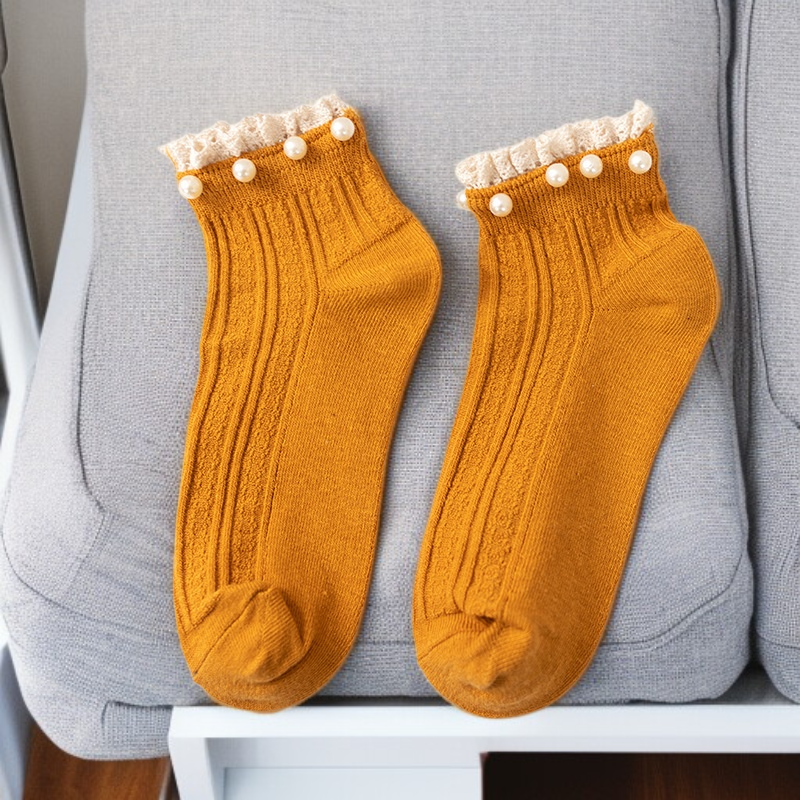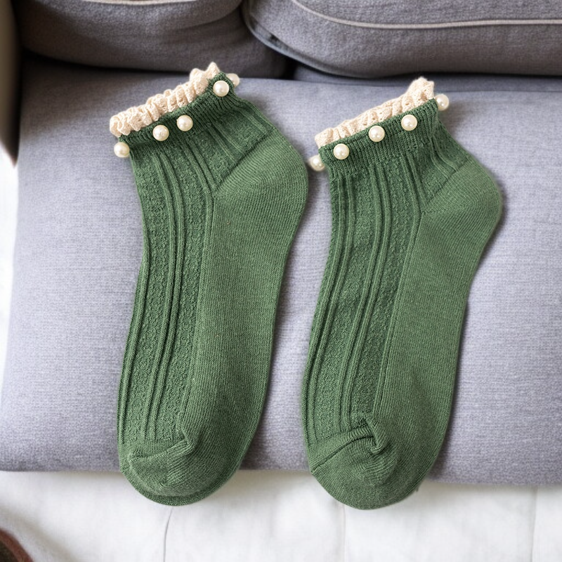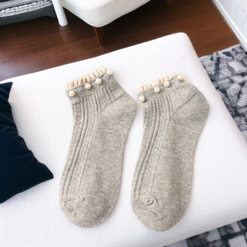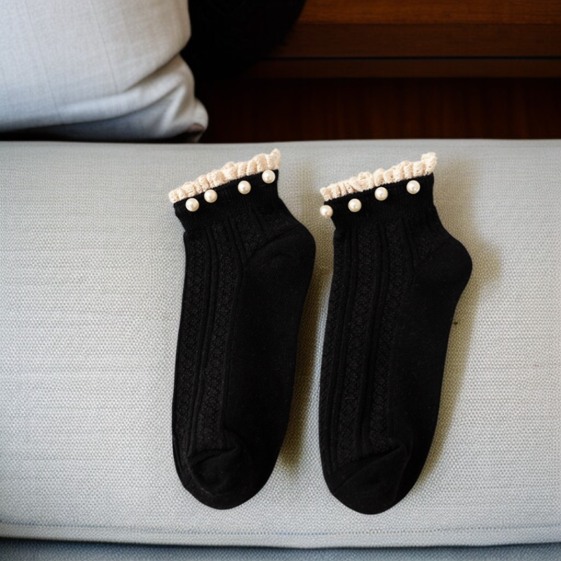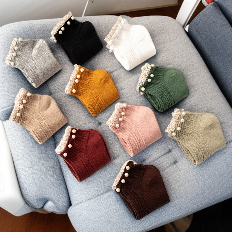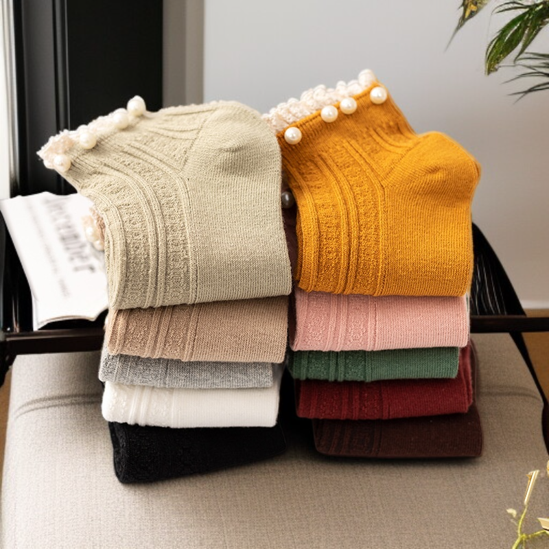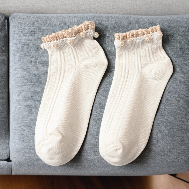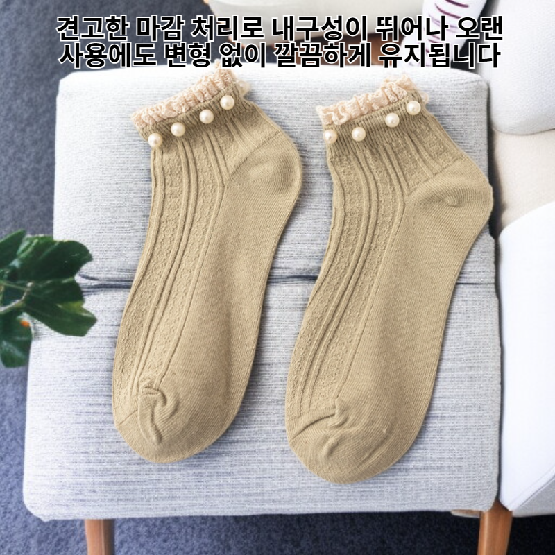 심플한 순색 진주 레이스 여성 면양말